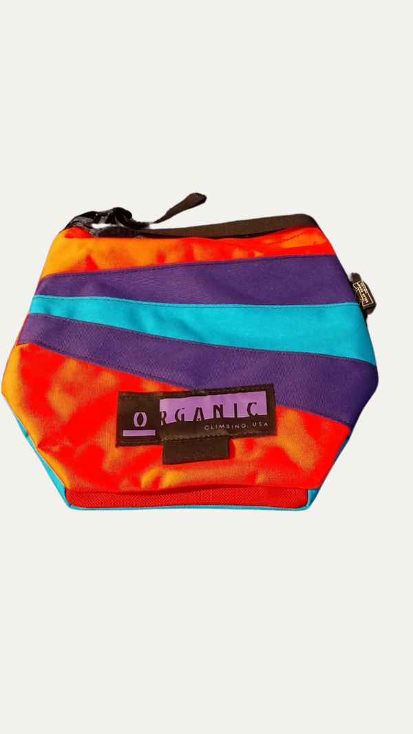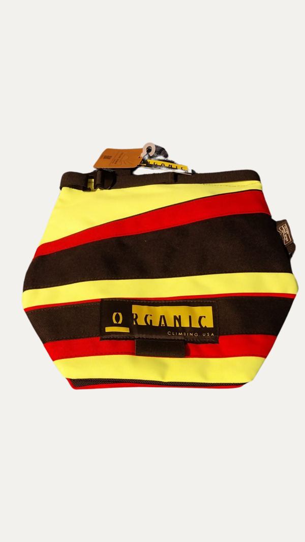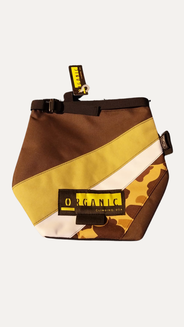 Our time-tested iconic bucket design provides a secure warehouse for your chalk supply. Burly 1200d Recycled Cordura fabric is stiff, ensuring the Lunch Bag Bucket stays open while you're bouldering. The bag seals with a ¾” hook and loop and then rolls down and clips like a boater's dry bag securely closed with an discrete hook buckle . A big outer pocket, two elastic brush-loops and signature Organic colors round out this stylish, user-friendly bouldering necessity. Partners perfect with the iconic Faza Confession Brush.