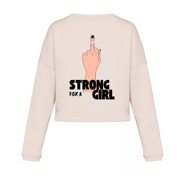 "strong for a girl" crop pullover